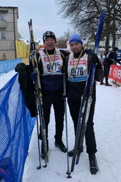 Fem minuter efter mig skidade Jacob i mål. Han hade haft det jobbigt på den fjärde milen, på andra varvet ut ur Norberg, men annars hade han hållt ett jämnare tempo än mig, och hade säkerligen kört ikapp mig om loppet varit en mil längre.. Han var förstås trött, men inte alls lika trött som mig.