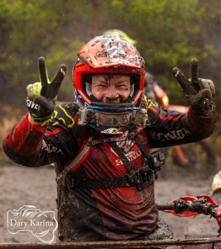 Efter att ha väntat en stund körde jag förbi några tveksamma förare och tog mig tillbaka mot det egentliga spåret. Där ute stod massor av övergivna hojar, och det var bara att inse att det här skulle bli en prövning. Jag följde efter två killar som hittade ett smalt spår genom en dunge, över ett lerigt dike, precis bredvid det egentliga spåret. Andra förare provade andra spår. Några fastnade, några kom framåt.