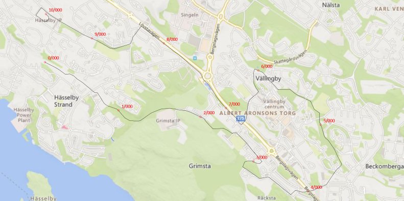 Starten sker på ett gärde 400 m från Hässelby Idrottsplats. Målet är inne på idrottsplatsen.